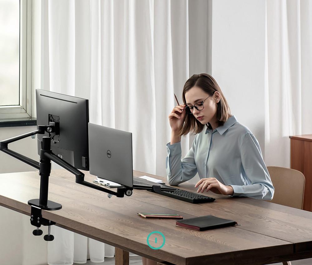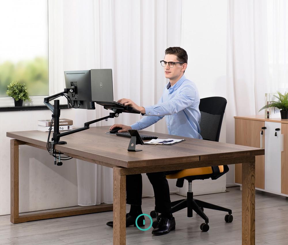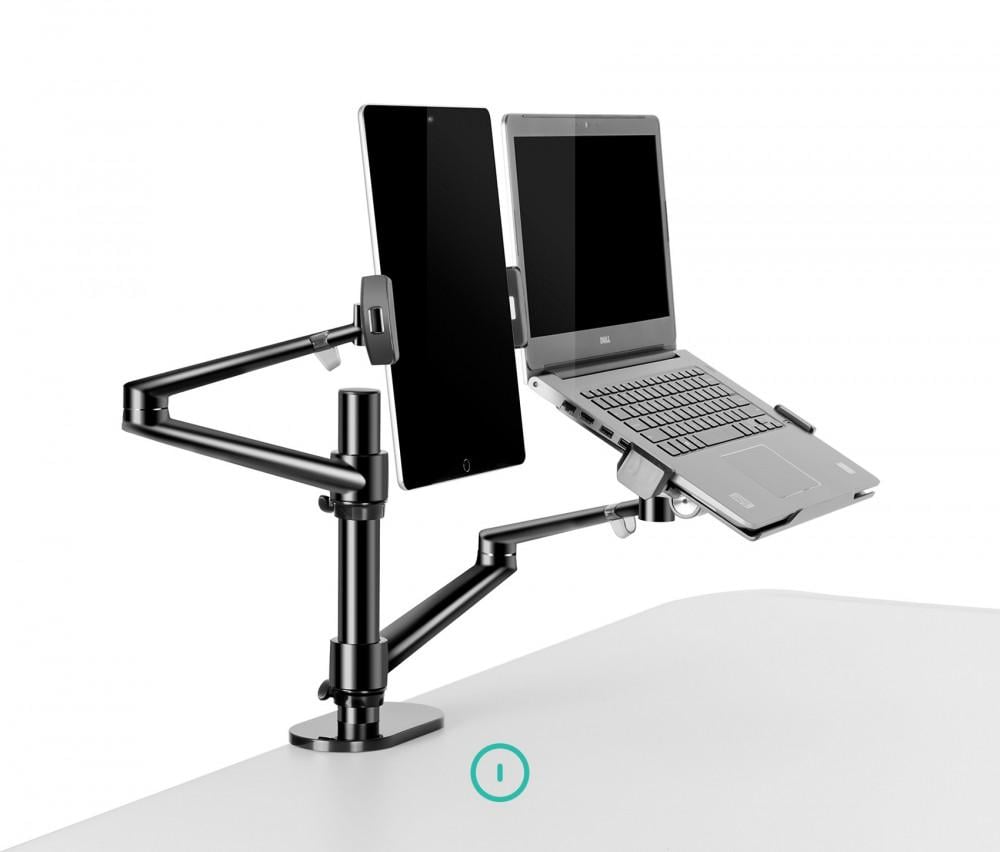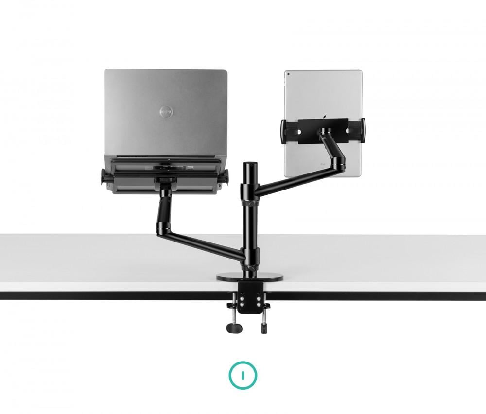حامل آيباد ولابتوب مكتبي مصمم بجودة عالية لتحويل مساحة عملك إلى بيئة أكثر تنظيمًا وراحة. يتميز بتصميم عصري وقوي يوفر استقرارًا للأجهزة المختلفة، مع إمكانية ضبط الارتفاع والزوايا لتناسب احتياجاتك. مثالي لتحسين الإنتاجية وتوفير مساحة إضافية على المكتب.