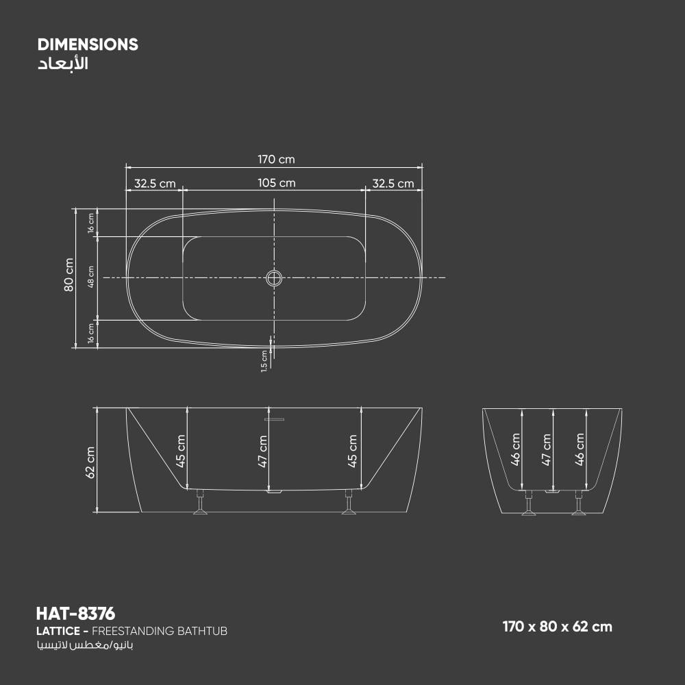 محتويات الكرتون: بانيو + هراب وجرجور من النحاس+ حامل وأقدام البانيو من الاستانلس ستيل + 304+ إرشادات التركيب