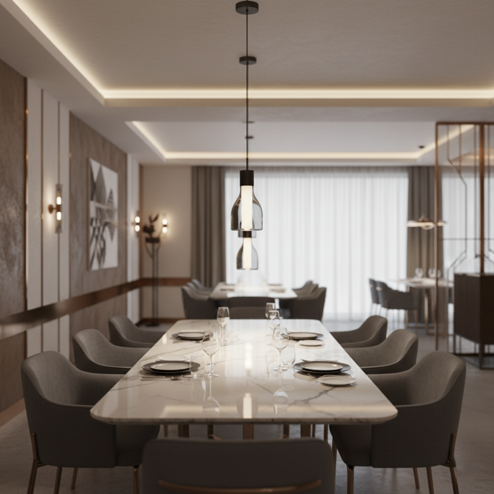 مثالية لغرف المعيشة، فوق طاولات الطعام، أو في الممرات لإضفاء جو دافئ وراقي.