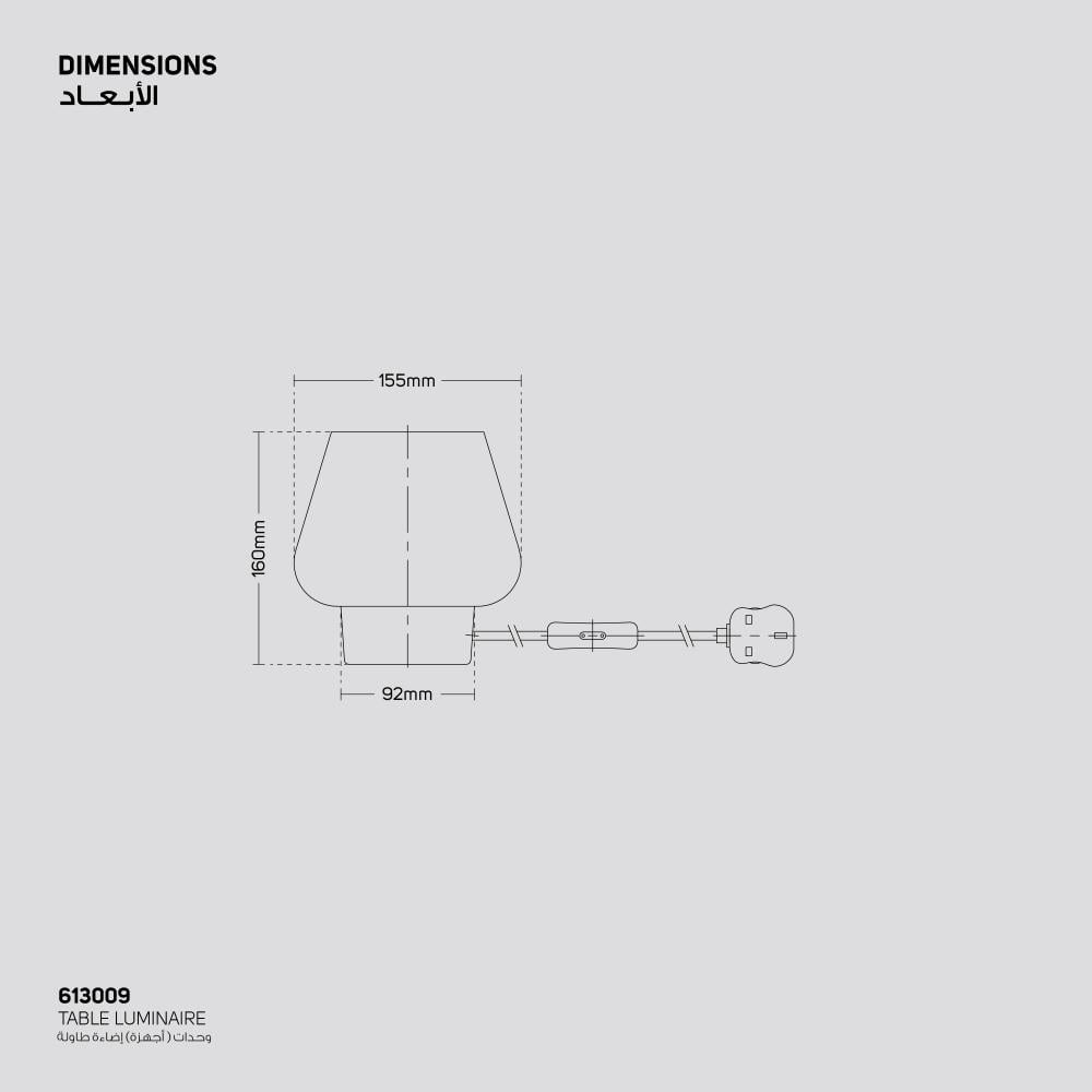الأبعاد: القطر 155 مم *الارتفاع 160 مم.