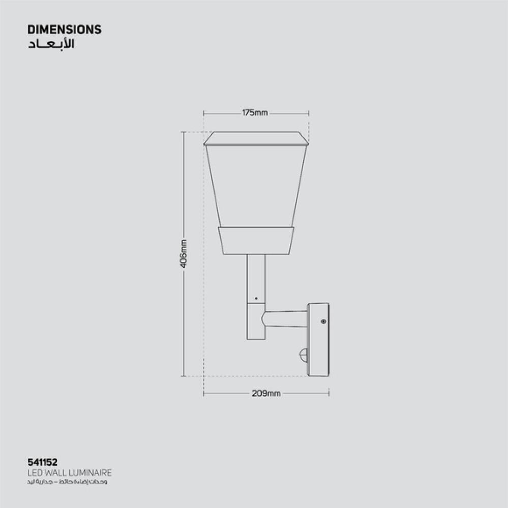 الأبعاد: العرض 406 مم × الطول 175 مم × الارتفاع 209 مم