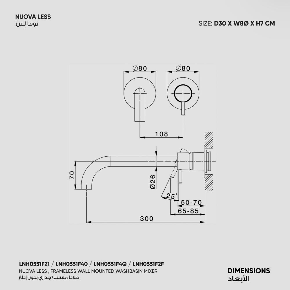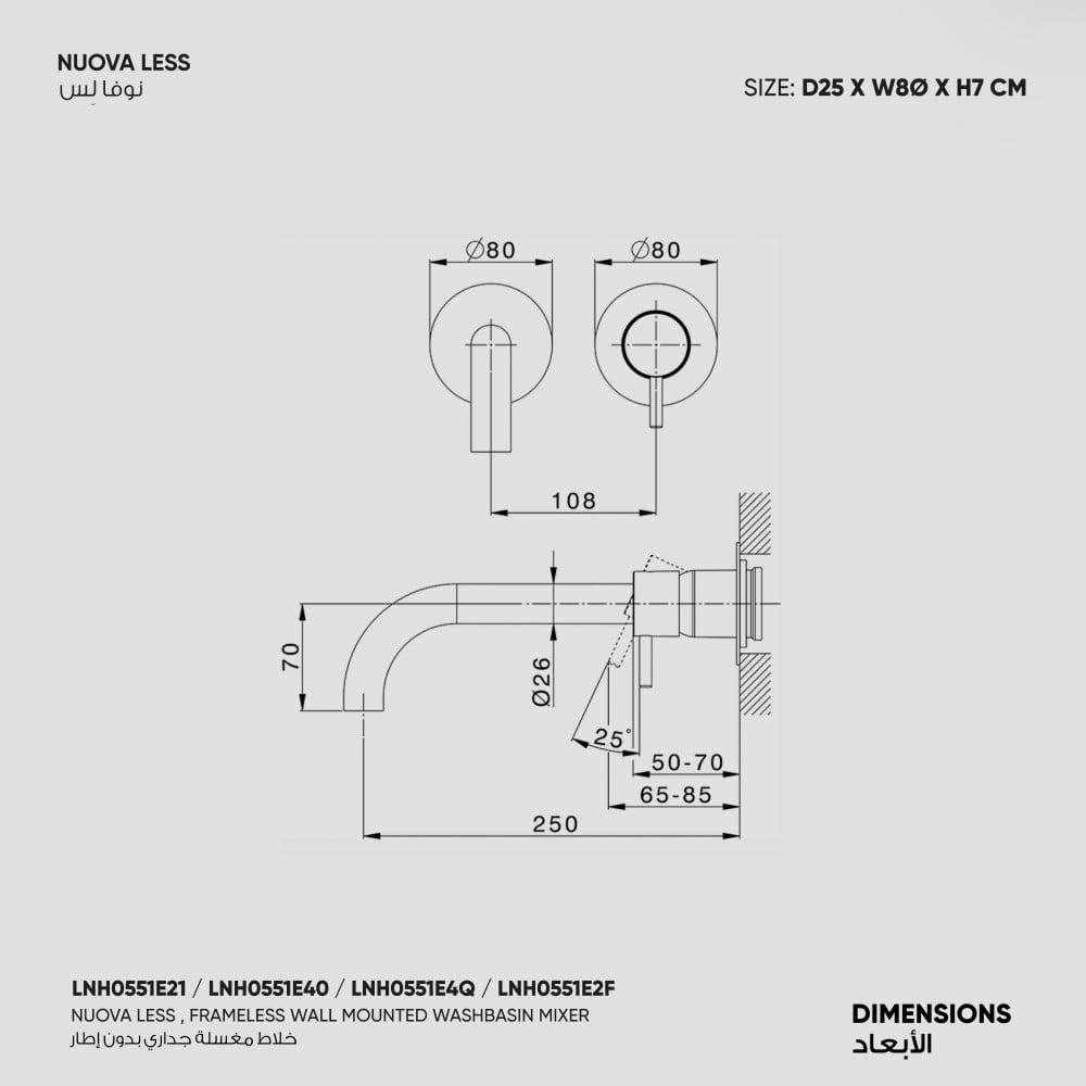 4. خلاط مغسلة جداري بدون إطار Nuova Less- LN00551