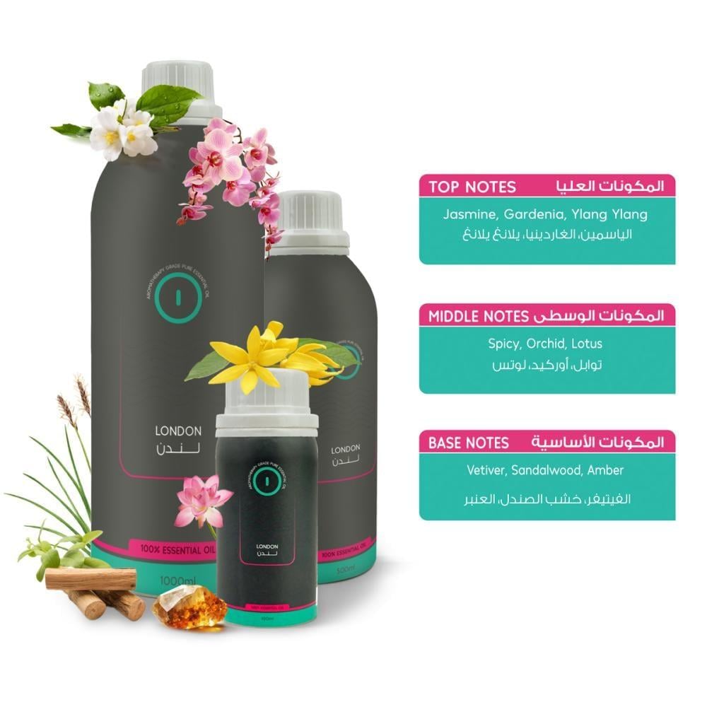 استمتع بلحظات من الأناقة والفخامة مع زيت عطري لندن. تأسر مكوناته العليا بنفحات من الياسمين والغاردينيا واليلانغ يلانغ، بينما تضيف مكونات الوسط لمسة من السحر والأناقة مع التوابل والأوركيد واللوتس. وتتوج التجربة بالمكونات الأساسية الرائعة من الفيتيفر وخشب الصندل والعنبر، لتمنحك تجربة عطرية لا تُنسى.