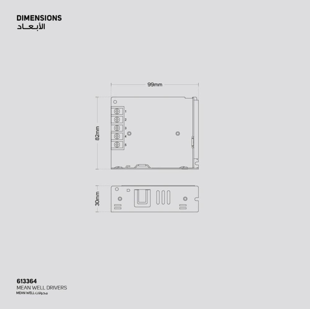 ملاحظة: يجب ألا يتجاوز الطول الإجمالي للشريط والموصل وسلك التمديد 8 أمتار يجب ألا يتجاوز اطوال اشرطة الإضاءة المتصلة بالمحول 5 متر