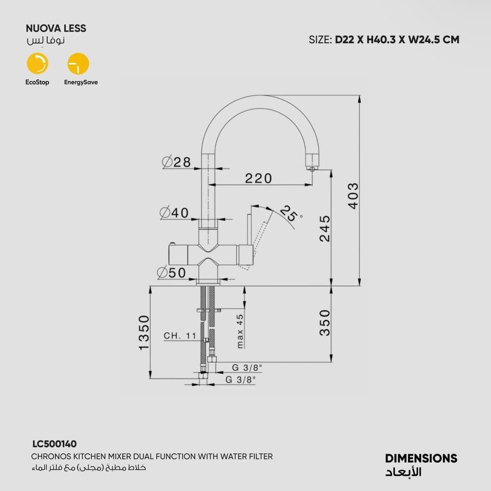 الابعاد: العمق 22 * الإرتفاع 40.3 سم