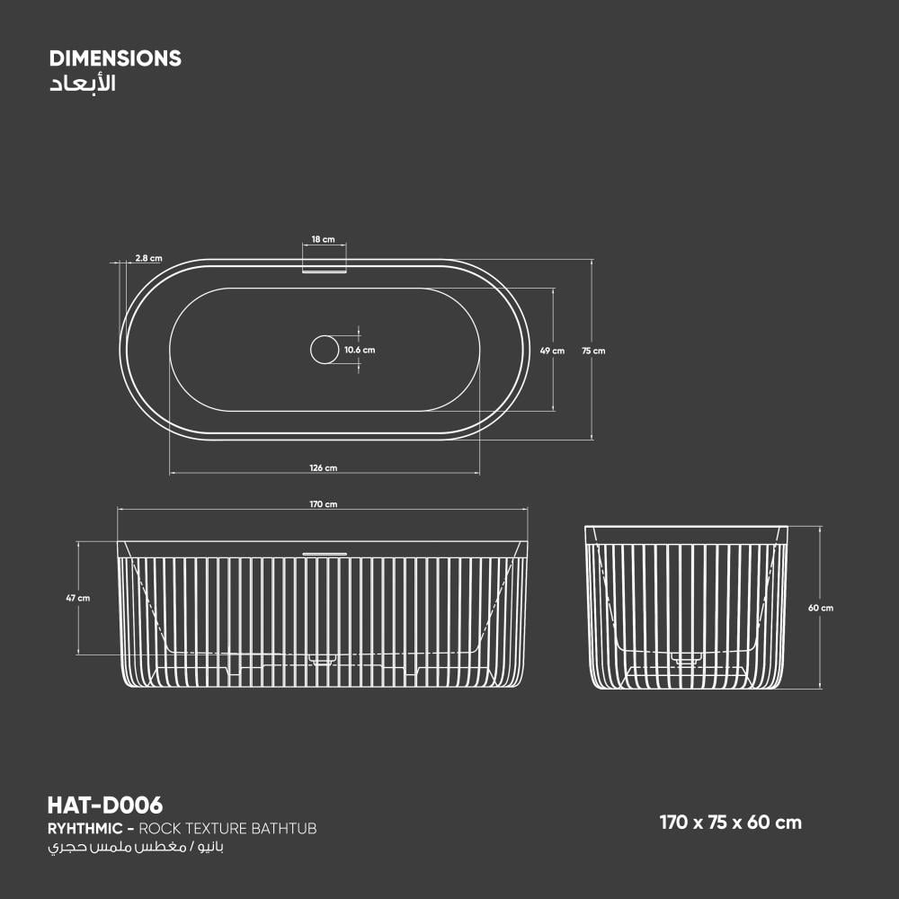 - تصميم مميز بلمسة نهائية جمالية ذات ملمس حجري من داخل وخارج البانيو