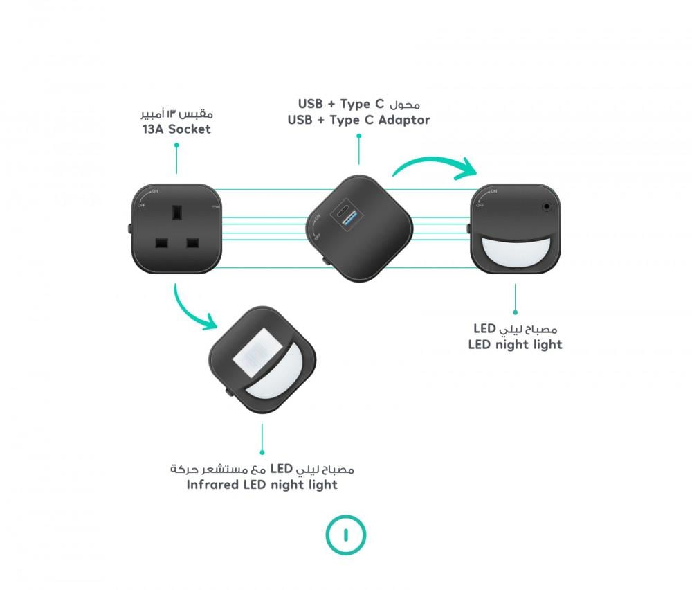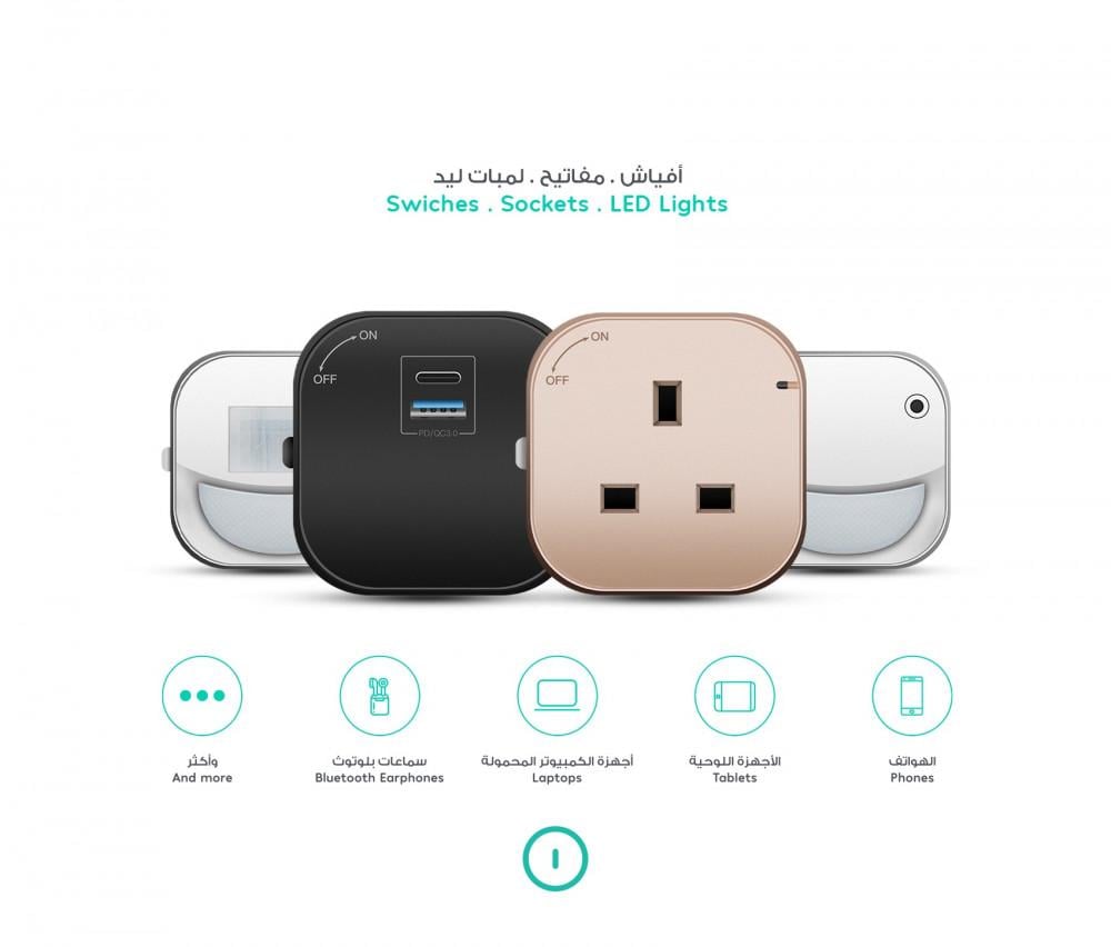 مقبس ذكي مع اضاءة ليلية ذكية . مناسب للمنازل الذكية ذات التصميم الانيق. متوفر من Hypnotek من خلال المنتجات المميزة. يوجد خدمة التوصيل في السعودية و دول الخليج