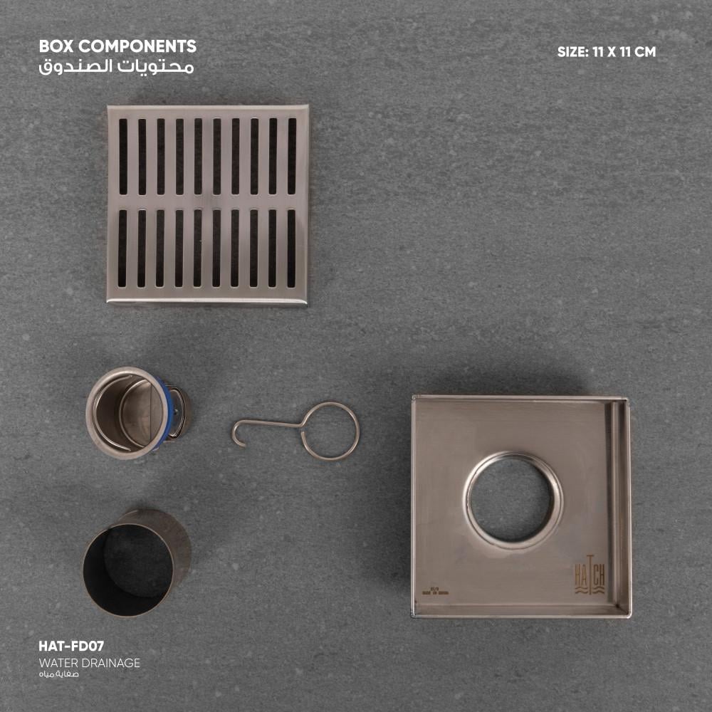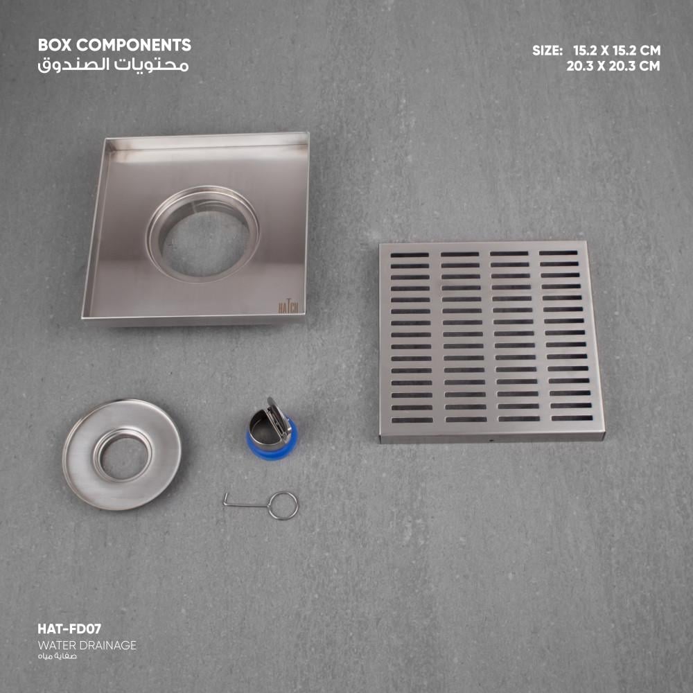 - صفاية المياه مع رداد للرائحة ومانع للحشرات وخطاف رفع.