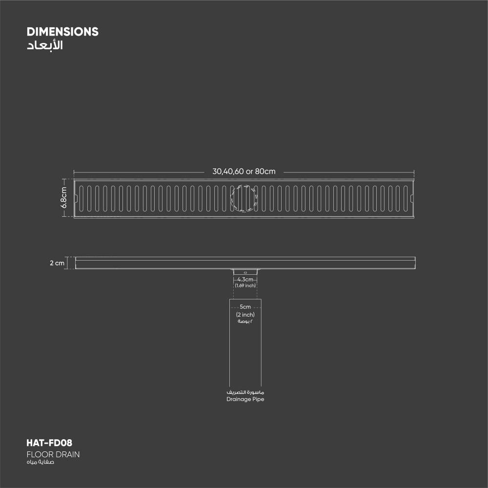 - الطول 80 سم - العرض 6.8 سم - الارتفاع 2.1 سم - وزن المنتج: 1500 جرام.