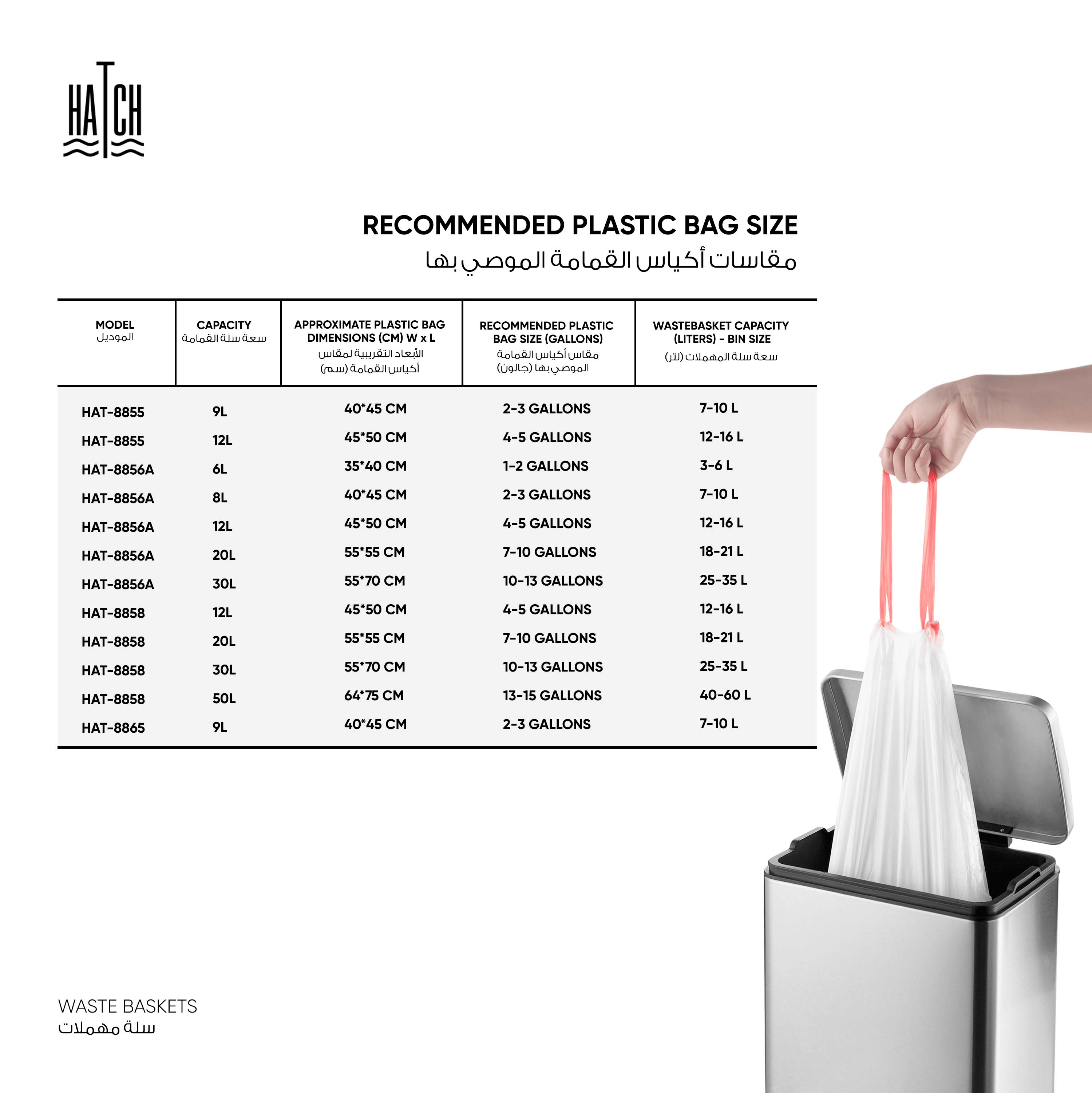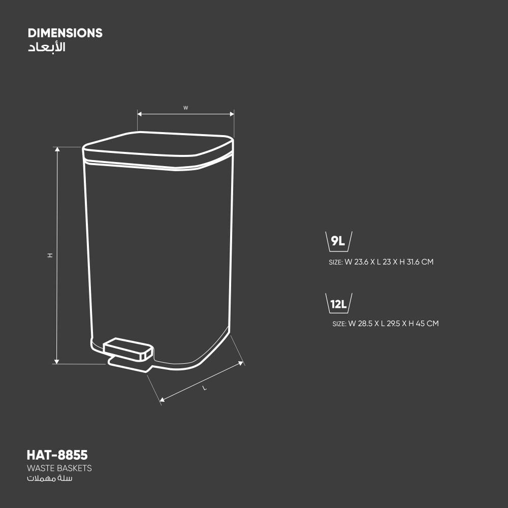 أبعاد المنتج: 9 لتر : 23.6*23*31.6 - 12 لتر: 28.5*29.5*45
