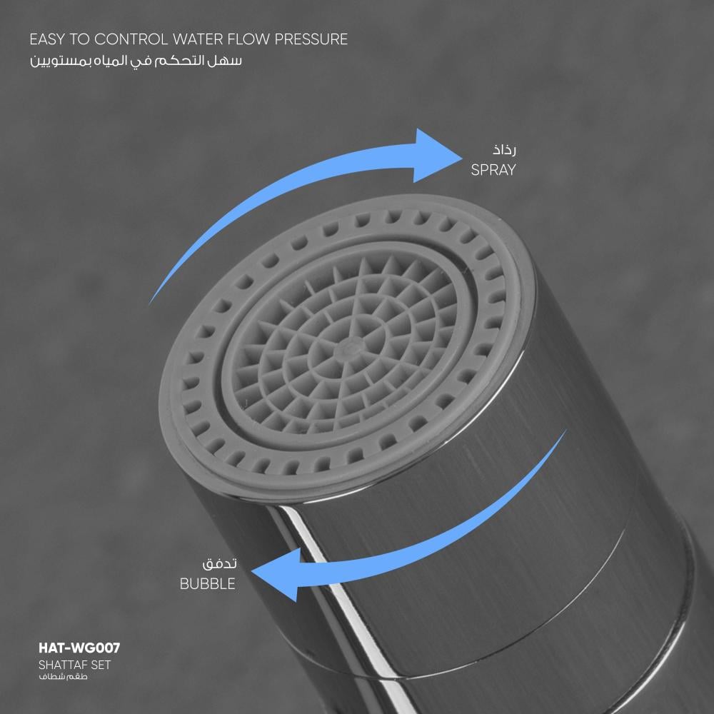 - امكانية تحكم في المياة من خلال زر سهل الاستخدام فتح واغلاق يعمل بالضغط .
