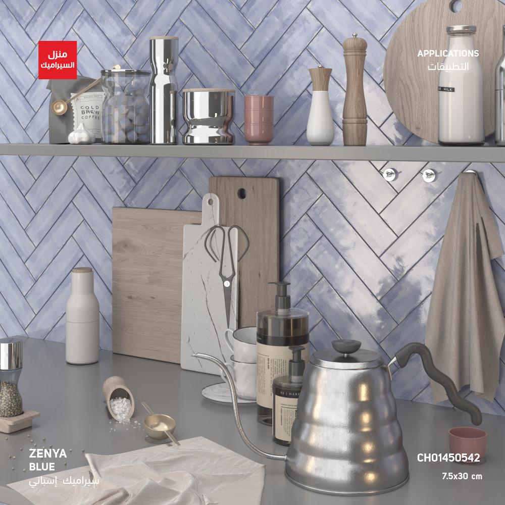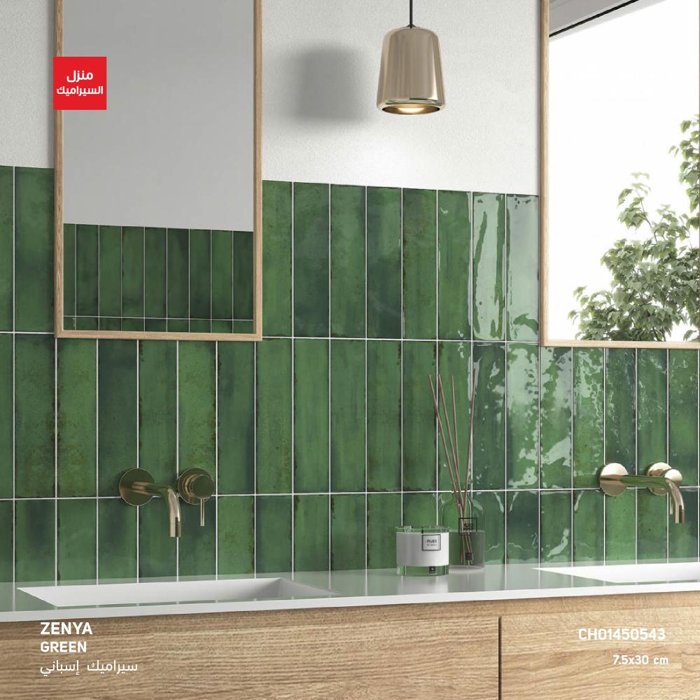 ومن العلاقة بين التقاليد والجذور التاريخية للسيراميك؛ بلاط جدران باللون الاخضر بأشكال صغيرة . إنها إعادة نظر معاصرة للطين المزجج اليدوي، القادر على إعادة الاتصال بالذاكرة. تصميمها هو نتيجة البحث عن التميز الصناعي المستوحى من الجمال النموذجي غير المثالي للحرفية.