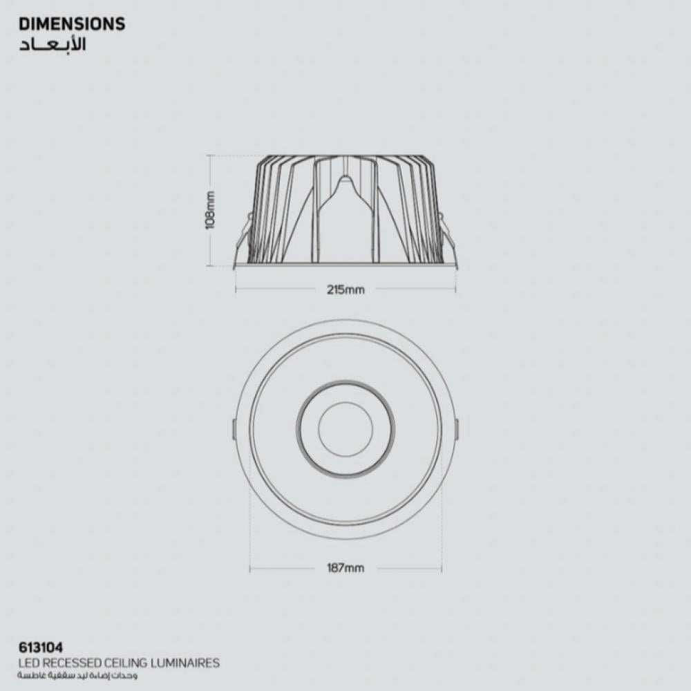 55W LED Anti-Glare Recessed Ceiling Lights Cut Size 200mm - Black