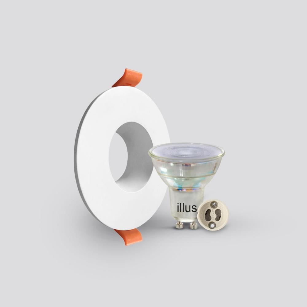 Non-movable recessed circular ceiling frame with cut size 80mm + LED spot lamp + lamp base Non-movable recessed circular ceiling frame with cut size 80mm + LED spot lamp + lamp base