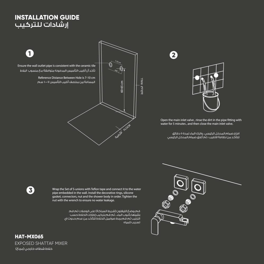 Installation method : For external installation on the wall, it is recommended to establish it at a height of 60 to 65 cm from the finishing level.