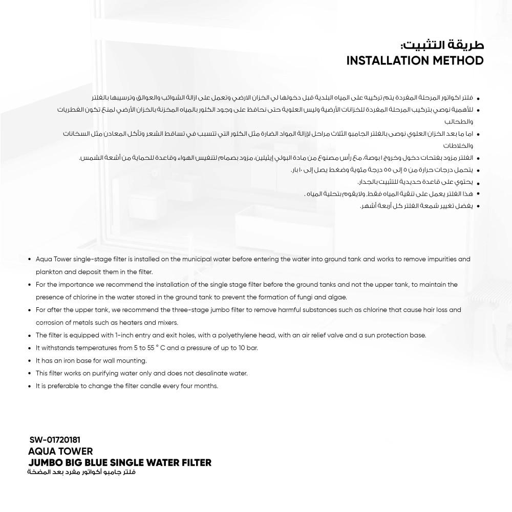 For importance, we recommend installing the single stage for ground tanks and not the overhead ones, in order to maintain the presence of chlorine in the water stored in the ground tank to prevent the formation of fungi and algae.