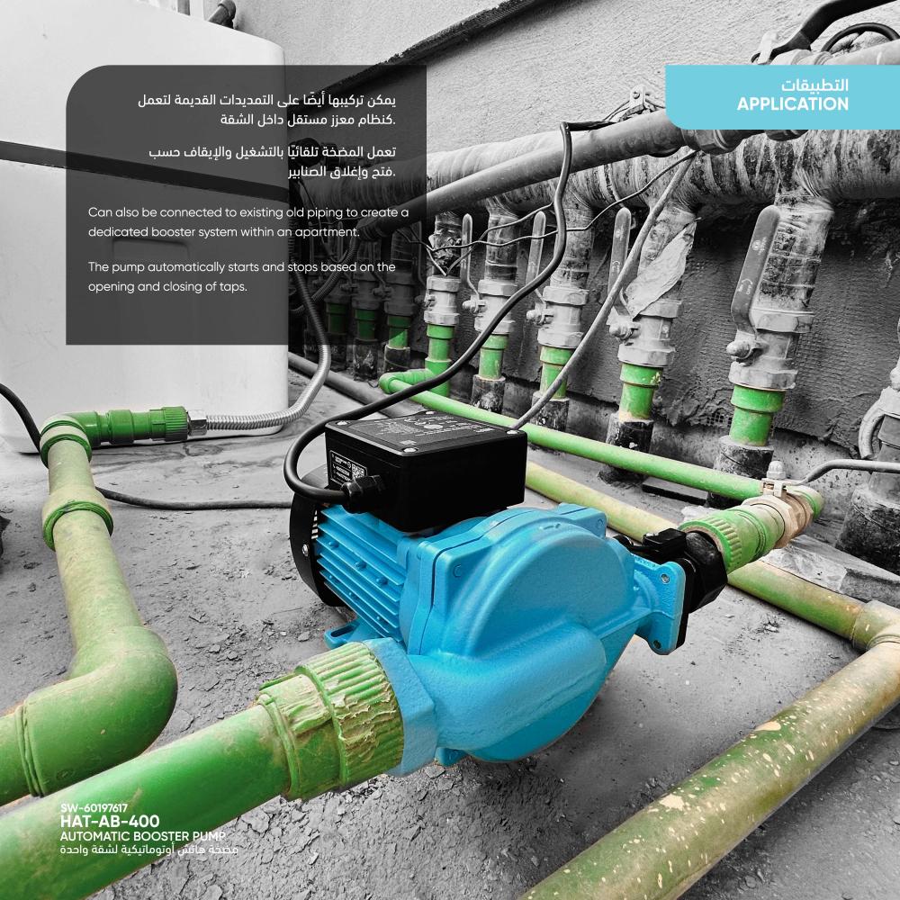 Can also be connected to existing old piping to create a dedicated booster system within an apartment.