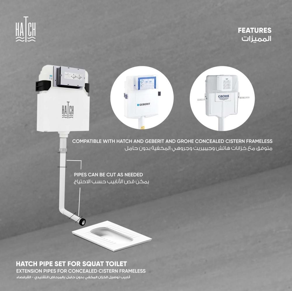 - Concealed tank connection pipes without bracket to conventional (squat) toilet