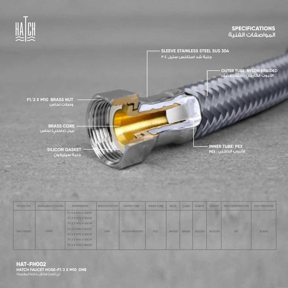 - Lee (Hose) Hatch outer tube is made of braided nylon, which is durable, flexible and rust-resistant.