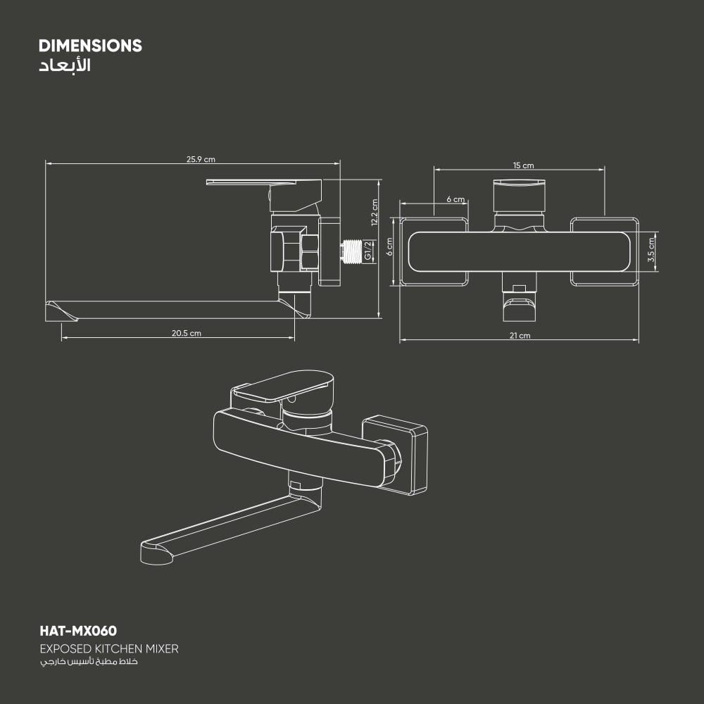 - 2 half-inch (male/female) stainless steel 304 installation connections