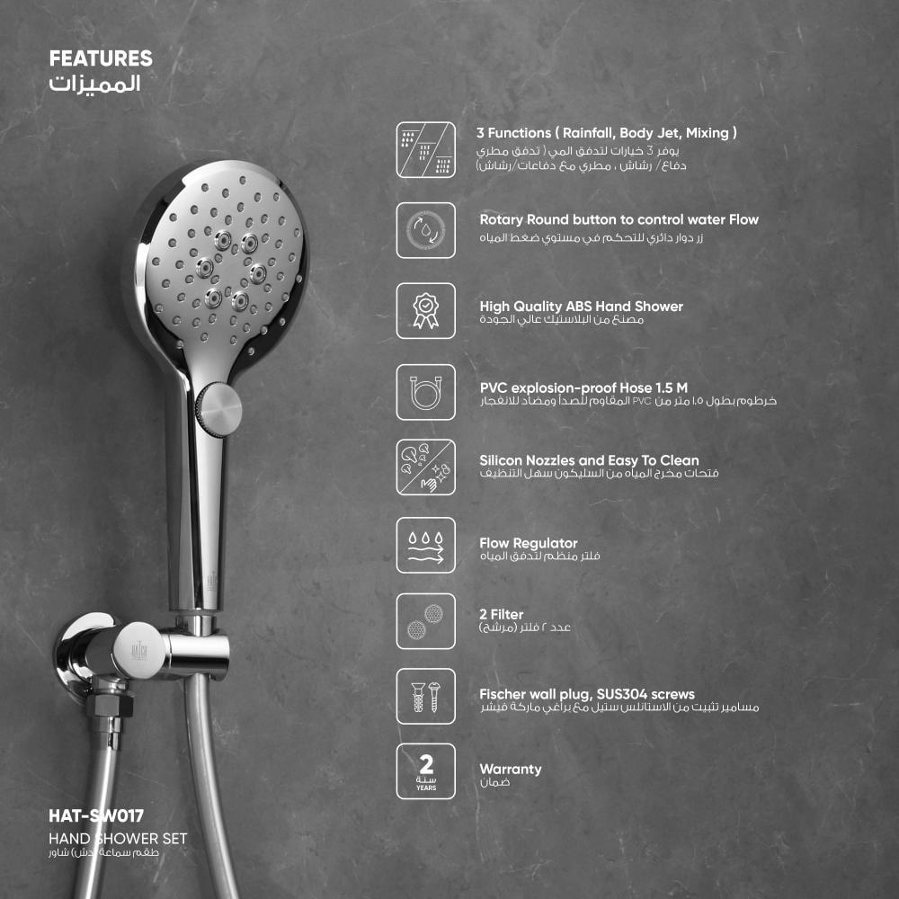 Material: Shower head with plastic holder, PVC hose and 304 stainless steel mounting screws