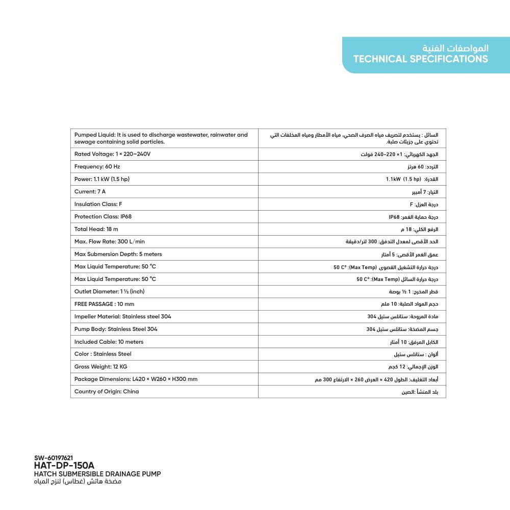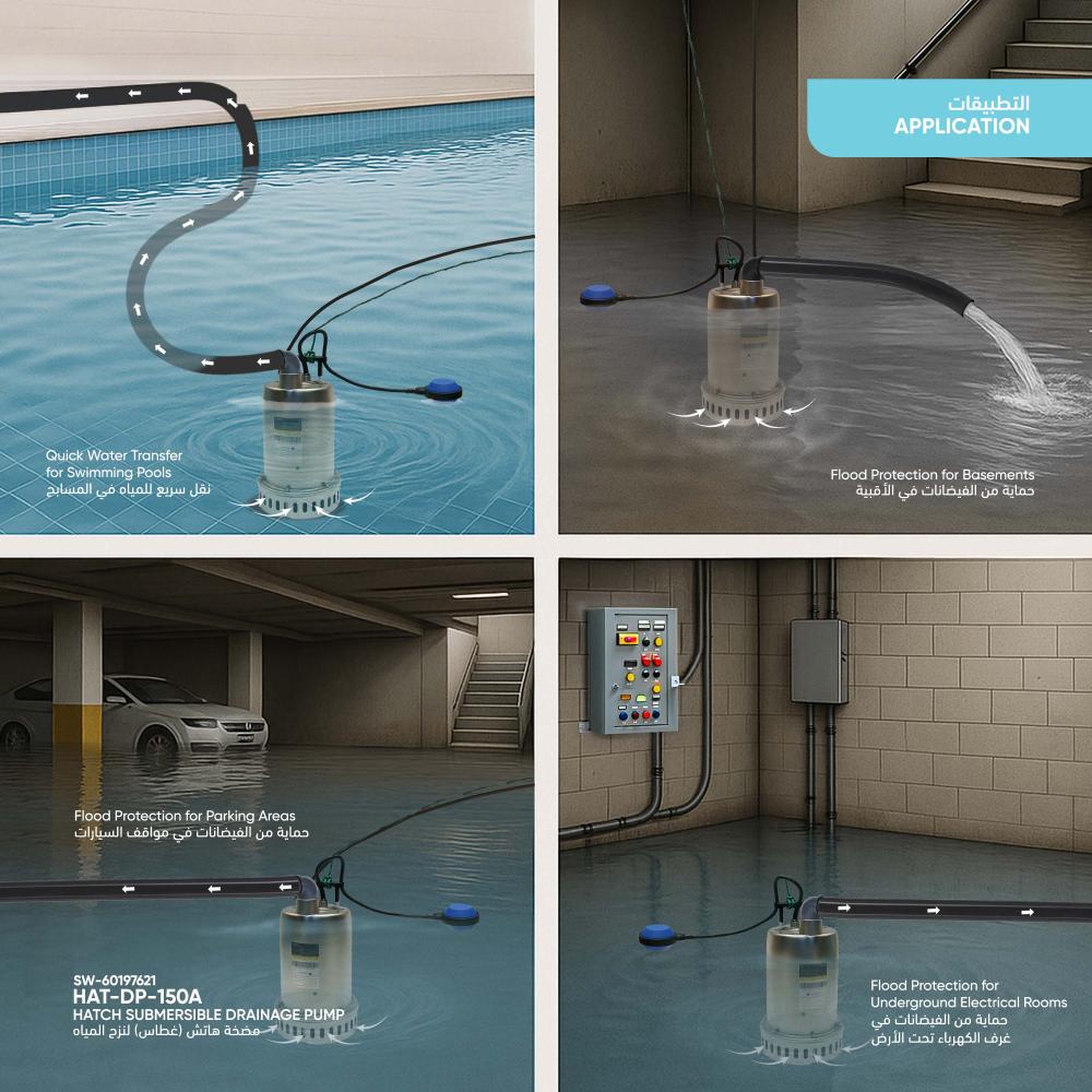 -The HATCH stainless steel submersible pump is designed to transfer clean or slightly dirty water, or other liquids with similar physical and chemical properties. Ideal for use in wells, pools, or basements, it efficiently lifts and drains water, making it a versatile solution for various water drainage management needs.