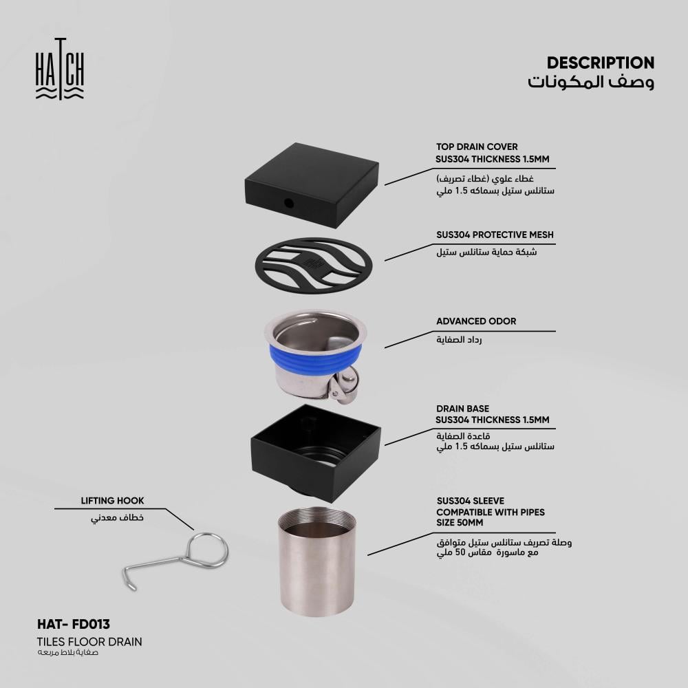 * تصريف فعّال وسهل التنظيف مصممة لتصريف المياه بسرعة وسطح أملس لمنع تراكم الأوساخ على السطح.
