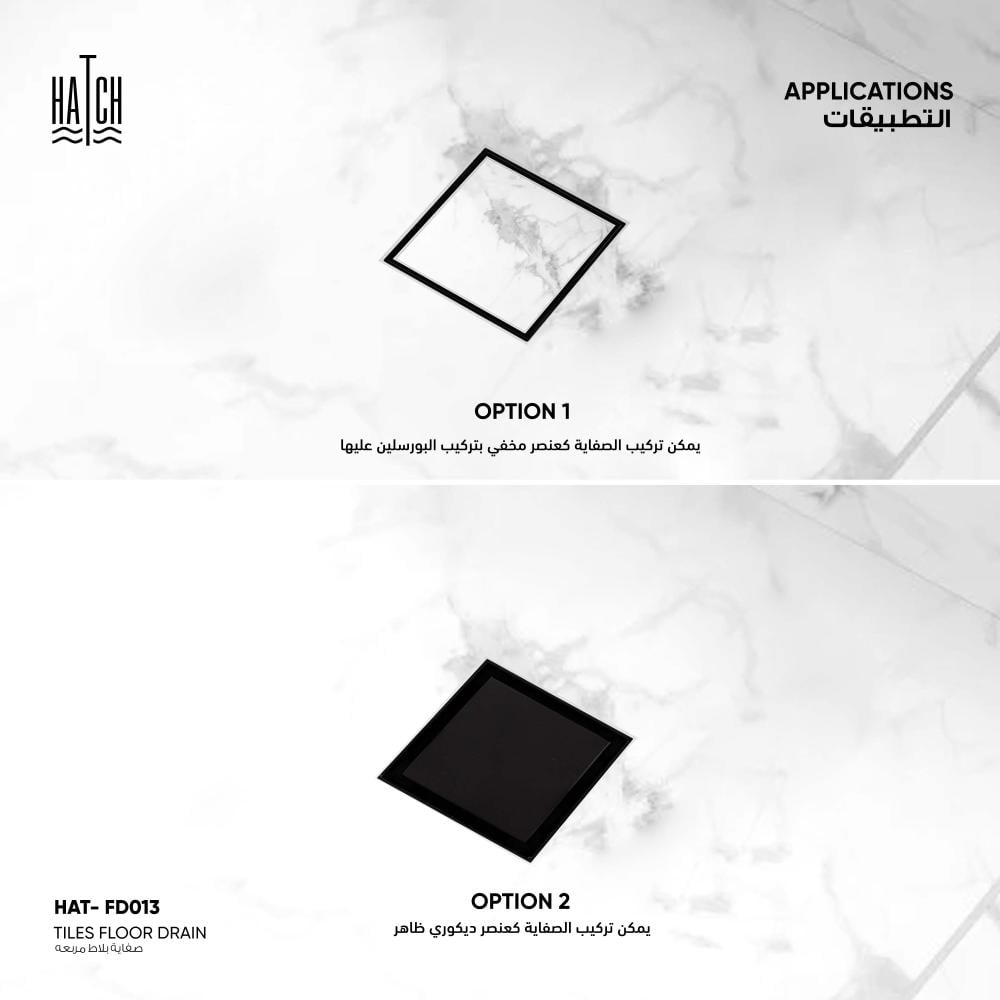 * تصميم نحيف وأنيق يمكن تركيبه كعنصر ديكوري ظاهر أو بشكل مخفي بتركيب السيراميك أو البورسلين عليه لدمجه بسلاسة مع الأرضية